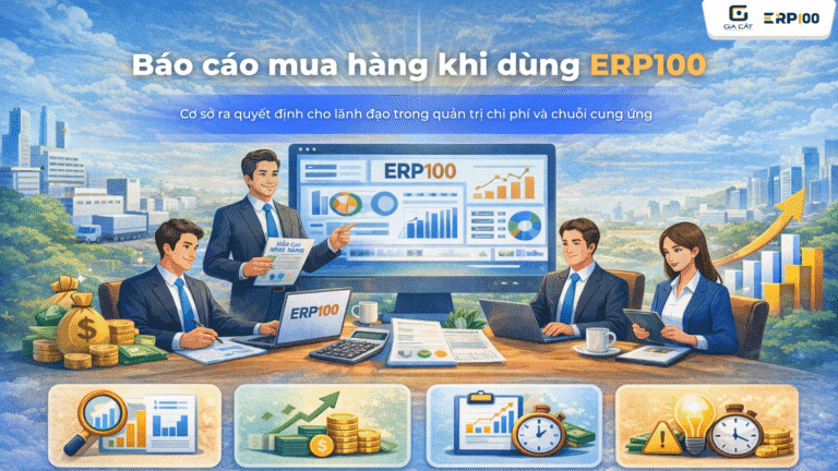 Báo cáo mua hàng khi dùng ERP100 cơ sở ra quyết định cho lãnh đạo trong quản trị chi phí và chuỗi cung ứng