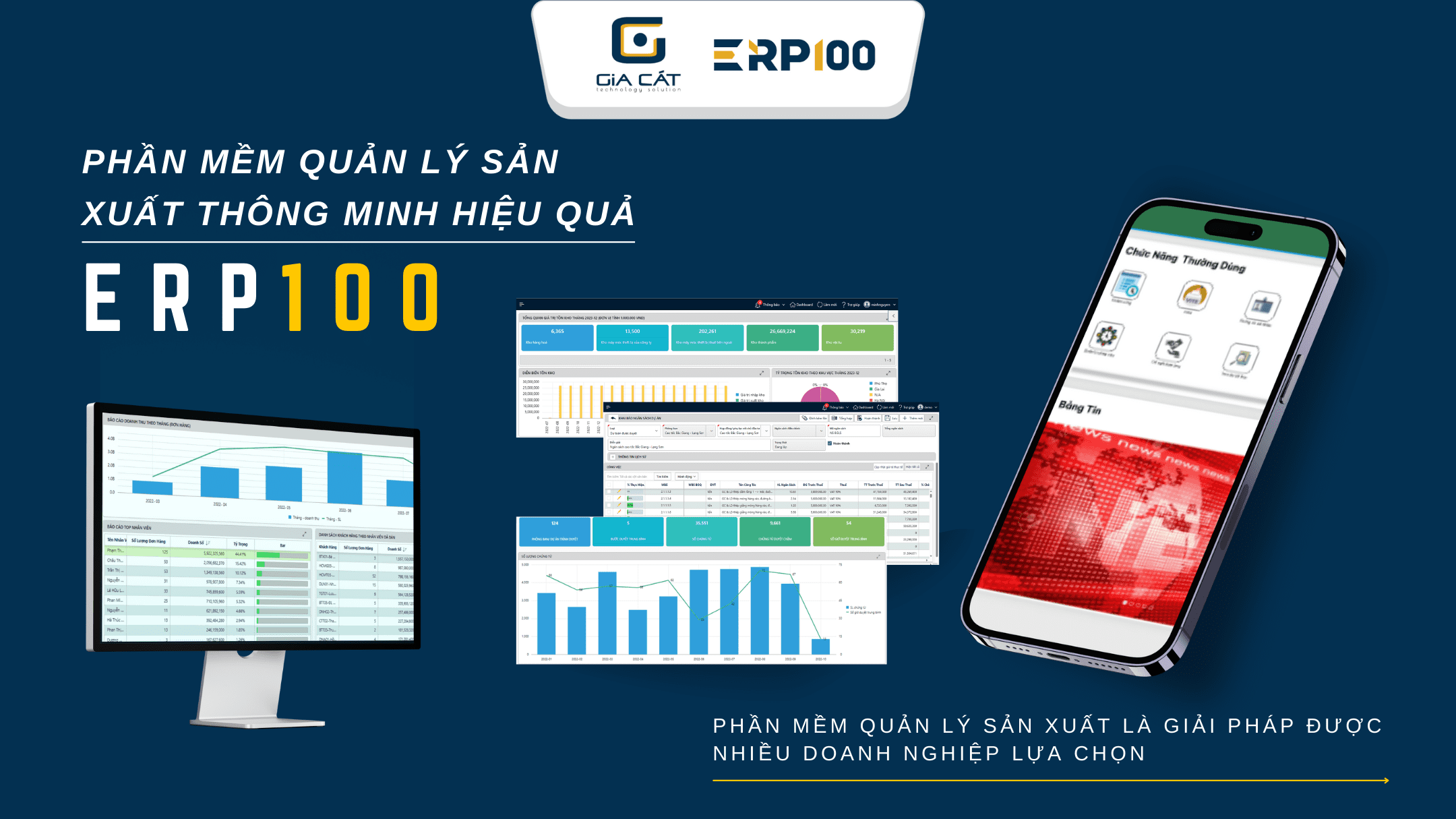Công ty Giải pháp công nghệ Gia Cát là đơn vị uy tín với hơn 15 năm kinh nghiệm trong việc cung cấp các giải pháp quản trị doanh nghiệp, đồng hành với các công ty, doanh nghiệp Việt lớn trên toàn quốc… Phần mềm quản lý sản xuất do Gia Cát cung cấp là 1 module tính năng nằm trong bộ giải pháp quản trị doanh nghiệp tổng thể ERP100, không chỉ được phát triển chuyên sâu dựa trên nhu cầu, đặc thù của từng doanh nghiệp mà còn được kế thừa những kinh nghiệm và tri thức quản trị thành công từ nhiều doanh nghiệp lớn trong ngành.